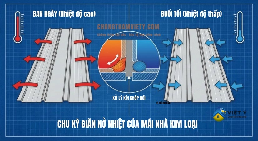 Mái tôn là một trong những bề mặt khó chống thấm nhất, do: