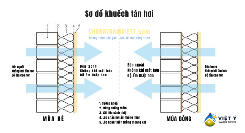 • Không làm bít hoàn toàn khả năng thoát hơi nếu là tường trong nhà