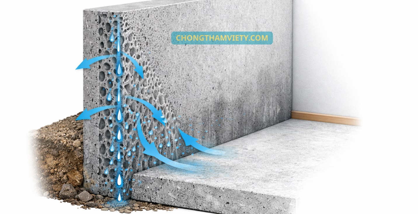 Bài viết này sẽ giúp bạn hiểu rõ mao dẫn bê tông là gì, nước thấm bằng cách nào dù bề mặt bê tông vẫn “nguyên vẹn”, và vì sao đây là nguyên nhân phổ biến gây thấm âm trong nhà ở và công trình hiện đại.