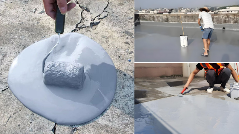 - Thi công ở dạng lỏng, tạo màng liền khối