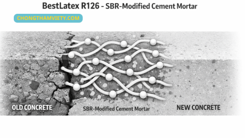 BestLatex R126 – phụ gia SBR tăng bám dính giữa bê tông mới và bê tông cũ, giảm nứt và chống thấm cho vữa xi măng