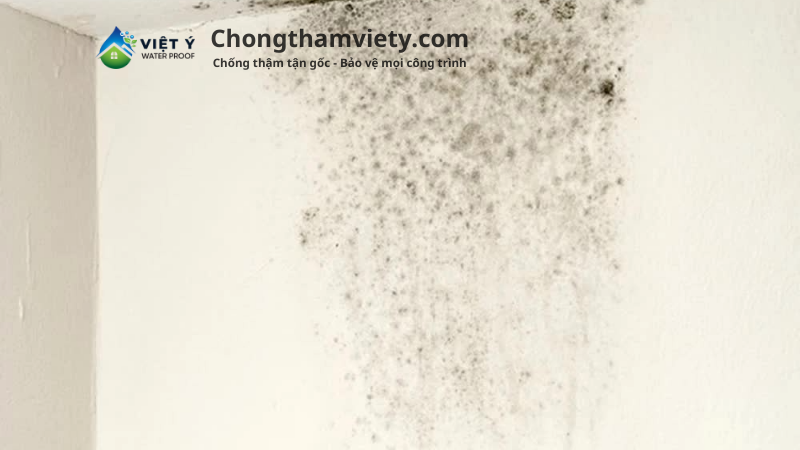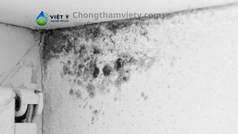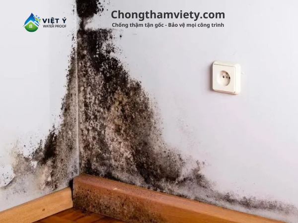 Tường bị mốc đen do thấm nước lâu ngày và tích tụ ẩm